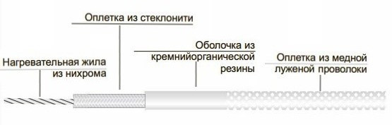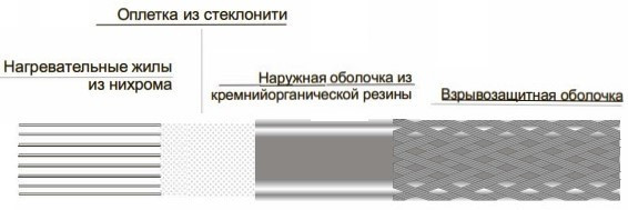 ЭНГЛУ-400 состоиз из стеклонити, пропитанной органосиликатной композицией, в основе которой восемь нагревательных жил из сплава с высоким удельным электрическим сопротивлением. Нагревательная проволка имеет 3х слойную обмотку из стеклонити, внутрении и промежуточные слои которой пропитаны органосиликатной композицией.