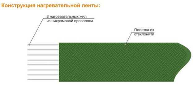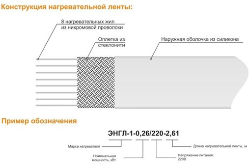 ЭНГЛ-1 - плетеная лента из стеклонити, в основе которой восемь нагревательных жил из нихрома. Снаружи нагреватели покрыты водонепроницаемой оболочкой из кремнийорганической резины. Изоляция из кремнийорганической резины особенно подходит, если необходима высокая гибкость ленты.