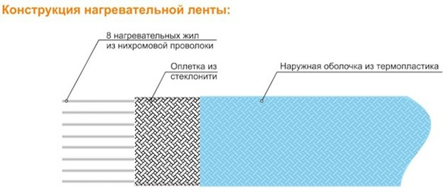 Температура поверхности нагревателя не должна превышать максимальной температуры, которую поддерживают его конструктивные материалы. Это обеспечивается путем ограничения температуры ленты при помощи терморегулятора.